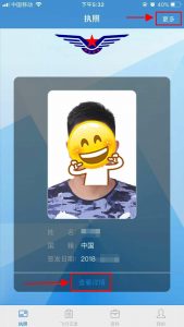 登录后点击“更多”按钮,即可获取执照及相关等级列表,点击列表中的不同项目以显示执照及相关等级的详细信息, 点击“详细信息”按钮,即可获取执照的相关信息。